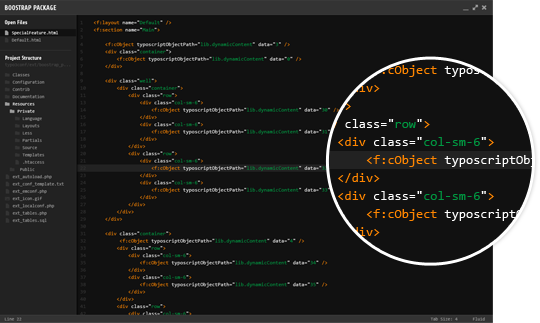 Fluid's approach to creating templates emphasizes simplicity, flexibility, extensibility, and easy of use. The syntax is XML-based and can be used in any Web IDE. With its ViewHelpers, Fluid can be extended by powerful functionality that fits custom web project needs.